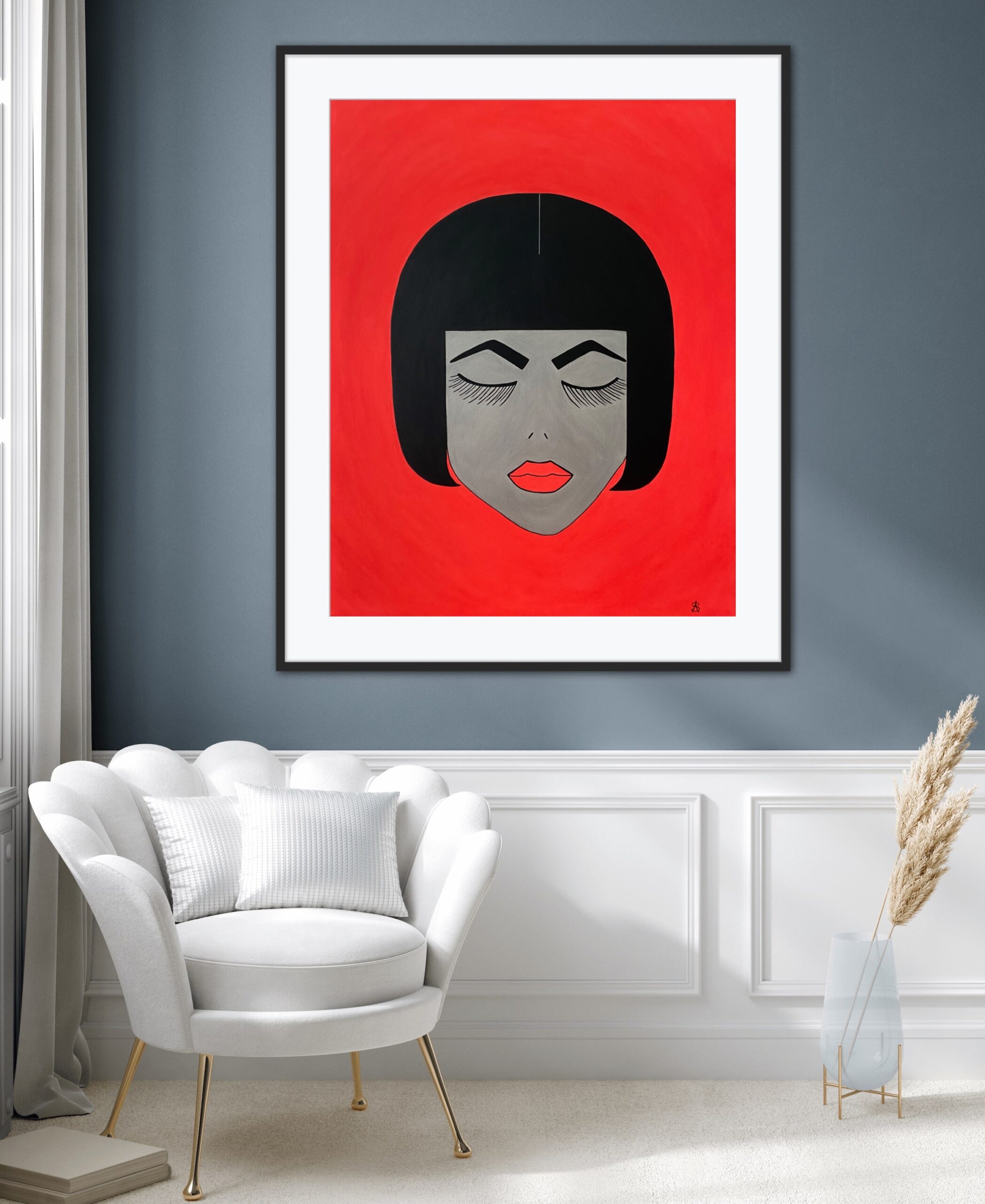 Miss Yang ruht mit geschlossenen Augen in sich – sie strahlt Stärke und Gelassenheit aus. Unbewegt ist ihr silbrig-helles stilisiertes Gesicht, eingerahmt vom akkuraten schwarzen Pagenkopf.